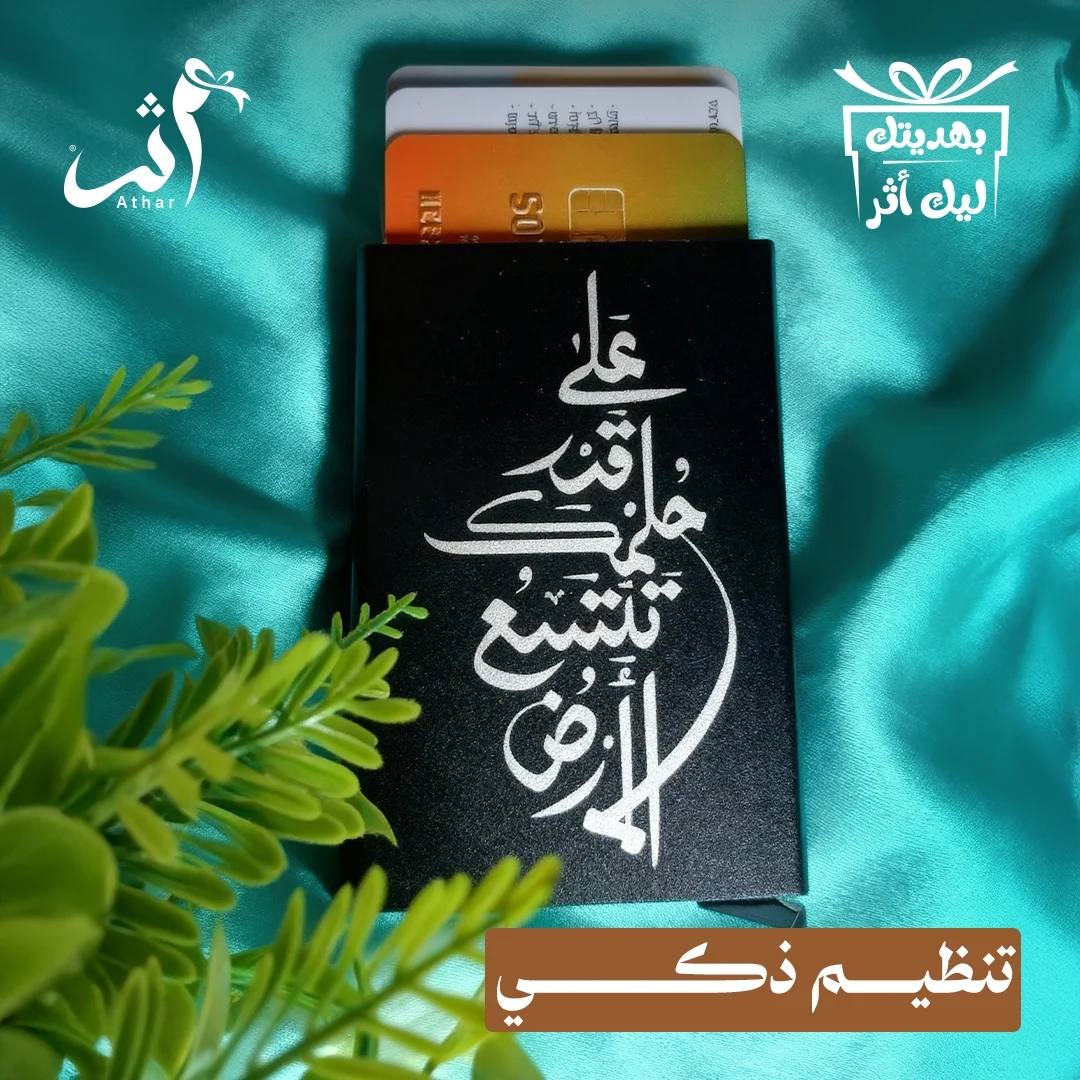 ضف لمسة من الرقي إلى أسلوبك مع حافظة كروت معدنية من أثر التي تجمع بين الفخامة والعملية في تصميم واحد، سواء كنت رجل أعمال أو موظف أو محب للتنظيم فإن حافظة كروت معدنية تمنحك تجربة مميزة لحفظ بطاقاتك الشخصية بأمان وأناقة و بتصميم راقي يجعلها مثالية لجميع الفئات إلى جانب أنها لا تشغل مساحة لتبقى بطاقاتك في متناول يدك دائمًا بأسلوب أنيق.